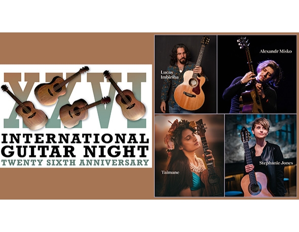 International Guitar Night (IGN) returns with a dynamic lineup featuring classical guitar virtuoso Stephanie Jones (Australia), rock/flamenco/classical powerhouse Lucas Imbiriba (Brazil), innovative fingerstyle guitarist Alexandr Misko (Russia), and, for the first time, ukulele master Taimane (Hawaii).