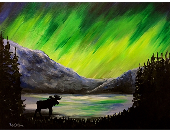 Northern Lights Moose - Tipsy Brush Painting Party!