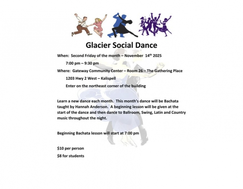 Learn a new dance each month! This month's beginnnig lesson will be the Bachata, a latin style taught by Hannah Anderson. The lesson will start at 7:00 PM, and afterwards, music will be played for various styles of dance, such as Swing, Cha Cha, Waltz, Salsa, Country, Tango, etc.