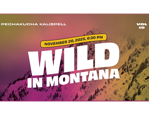 Join us for PechaKucha Night on Thursday, November 20, 2025 at 6:30 PM at the Wachholz College Center in Kalispell as the theme "Wild in Montana" is explored. In rapid-fire 20×20 format, you’ll hear backcountry hikers, dedicated anglers, a fire & forestry historian, a Montana storytelling photographer, and more share vivid, first-hand snapshots of what it means to get wild in the Last Best Place - plus the work they’re doing to keep Montana wild, free, and accessible for everyone. Expect trail grit, river lore, fire history, conservation wins, and the kind of big-sky storytelling that sticks with you long after the lights come up. Bring your curiosity, your friends, and your love for open spaces - this is Montana, told by the people who live it and love it!